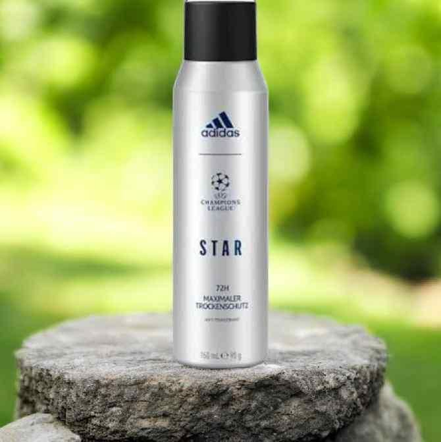 Experience all-day freshness and confidence with the Adidas Champions League Star 72h Body Spray. Inspired by the energy and passion of football, this deodorant offers long-lasting protection for up to 72 hours. Its vibrant fragrance combines sporty notes with masculine undertones, keeping you cool, fresh, and ready for every challenge.