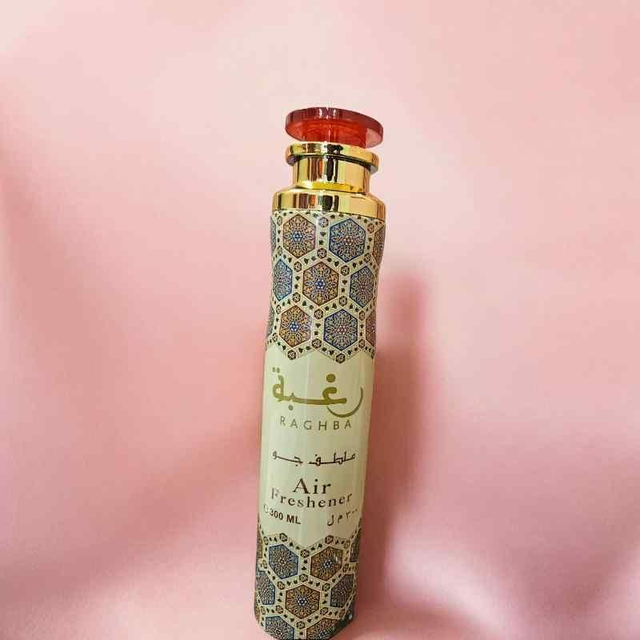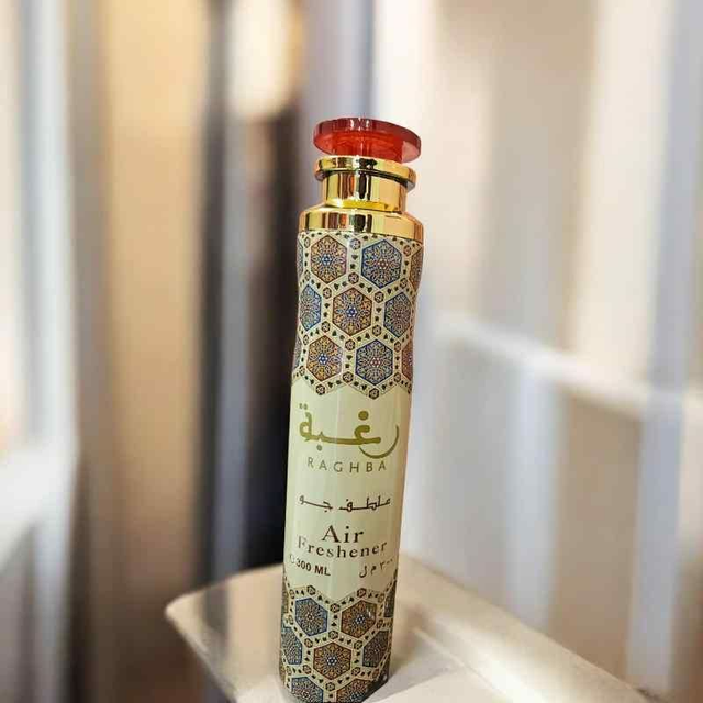 Raghba Lattafa Air Freshener fills your space with a rich and comforting fragrance inspired by the popular Raghba scent. This luxurious 300ML air freshener blends warm, sweet, and oriental notes to create a welcoming and long-lasting aroma. Perfect for home, office, or car use, it instantly refreshes the air and enhances your environment with elegance.