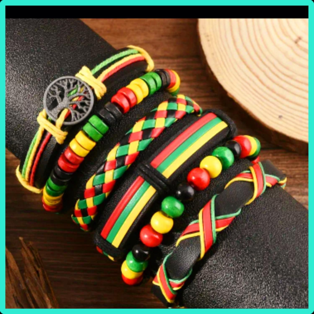 The Rasta Style Beaded & Leather Bracelet Set, available at Sufajo Gifts Collection, is a bold and vibrant accessory inspired by the iconic red, yellow, green, and black Rasta color scheme. Featuring a mix of wooden beads, braided leather, and a detailed Tree of Life charm, this set offers versatility and style. Wear them together for a layered statement look or separately for a more subtle touch. Designed with an adjustable fit, these bracelets are lightweight and comfortable for everyday wear.